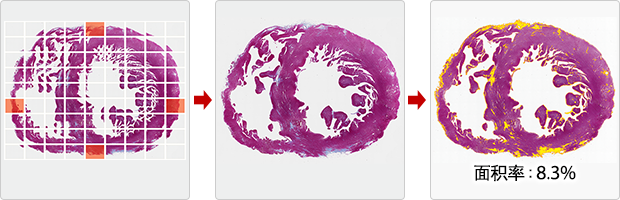 視野對準標本的一部分后,只需按下按鈕即可自動開始掃描標本。僅需自動識別標本形態并掃描必要需要的位置,快速創建整個標本的導航圖像。