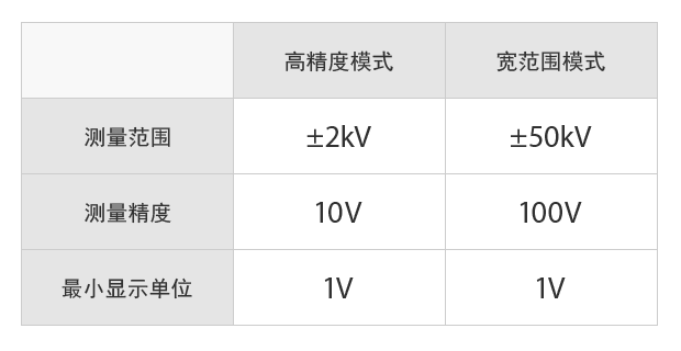 既能進(jìn)行最小顯示單位1 V 的高精度測量,也能進(jìn)行±50 kV 的強(qiáng)帶電工件測量,從而滿足各種廣泛需求。