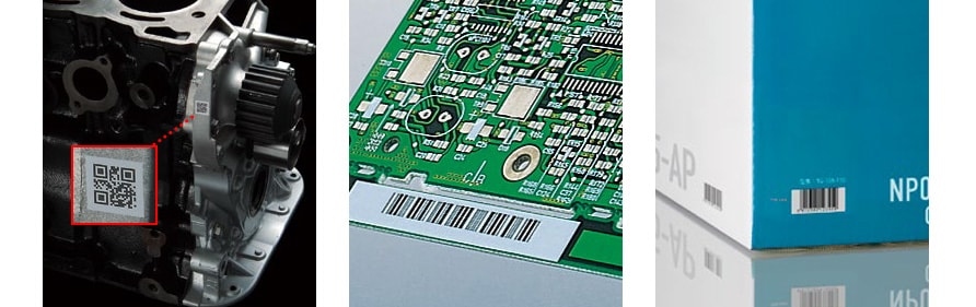 “二維碼刻印驗(yàn)證”是指檢查“ DataMatrix 碼”和“ QR 碼”等二維碼的刻印品質(zhì)。近來由于二維碼在各種領(lǐng)域普及,在多個(gè)現(xiàn)場讀取相同二維碼的案例越來越多(汽車零件供應(yīng)商與整車廠之間、醫(yī)藥廠商與藥房之間、智能手機(jī)模塊廠商與裝配廠商之間等)。