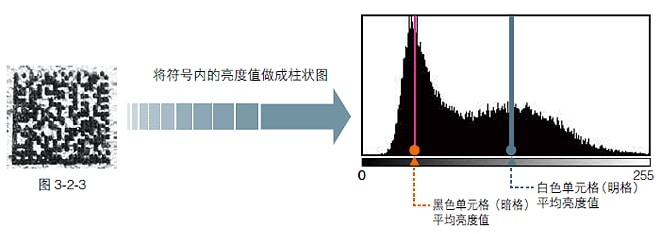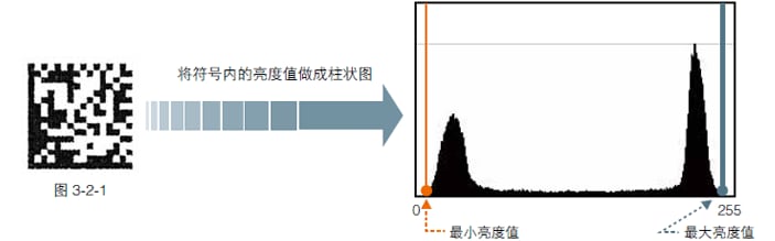 ISO/IEC 15415 以符號內(nèi)的最大亮度值和最小亮度值的中間值作為閾值。
