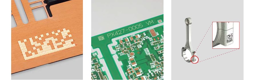 為了實現產品的可追溯性,直接金屬零部件刻印受到飛機、汽車、電子設備、醫療器械等領域的關注,在金屬零部件、模具、印刷電路板、塑料、玻璃等材料上均實現了直接打刻自動識別碼的技術。
