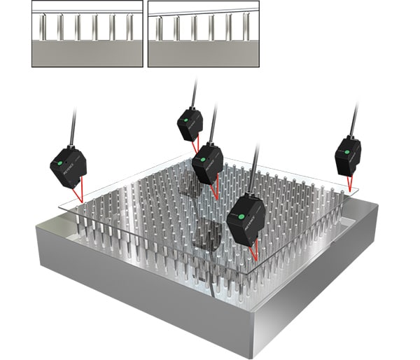 若要通過厚度測(cè)量判斷迭片數(shù)量是否在規(guī)定范圍內(nèi),則要求精確到微米級(jí)的測(cè)量精度。激光移位計(jì)LK系列采用了能大幅控制表面粗糙度影響的光學(xué)設(shè)計(jì),并配備了專用部件,可在線高精度測(cè)量各種目標(biāo)物。
