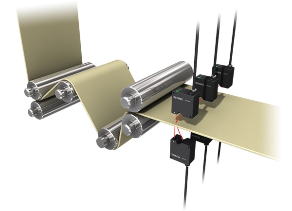 通過采用基恩士的分光干涉式激光位移計(jì),可測(cè)量細(xì)微的薄膜厚度,并活用于吐出流量、壓力及傳輸速度的理想控制。