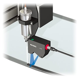 2D激光移位計(jì)LK系列的特點(diǎn)是具備超快的采樣速度。即使在高速控制膠槍的情況下,仍可進(jìn)行窄小間距的測(cè)量,因此能防止密封不良。