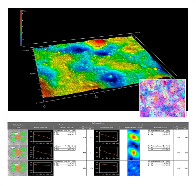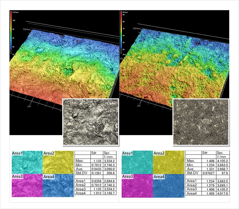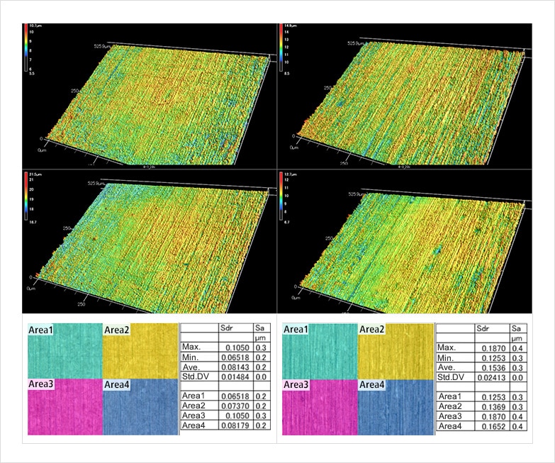 定量化因金屬加工法產(chǎn)生的差異 Sa(算術(shù)平均高度)/Sz(最大高度)/Str(表面性狀的長(zhǎng)寬比)