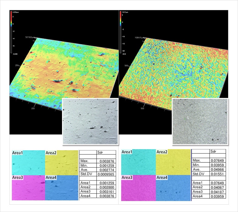 比較不同加工方法所產(chǎn)生的表面性狀的變化。可以Sa/Sz看出成品的狀況,以Str看出成品痕跡如何呈現(xiàn)在外觀上。