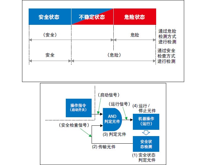- 此類系統(tǒng)只在確認(rèn)安全后才允許運(yùn)行機(jī)器,是構(gòu)建明確安全條件的一種方法。詳細(xì)地說就是,只有當(dāng)系統(tǒng)檢測到用戶不