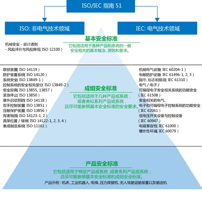 新標準要求。因此,ISO 和IEC 標準被分為各種等級(按照ISO/IEC 指南51),通過結合這些標準,可以為新的機器提供支持。
