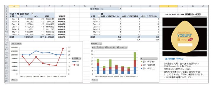 可以將檢測結果和圖像數據對應起來,并用Excel進行分析、輸出。此外,還能根據Vision Database輸出的數據,輕松創建每月的檢測報告。
