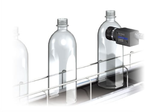 在線上也能實(shí)現(xiàn)正確的尺寸測(cè)量。例如,橫向拍攝在生產(chǎn)線上流動(dòng)的塑料瓶,通過(guò)測(cè)量瓶身頸環(huán)的尺寸,檢測(cè)成型不良、品種差異、裝配錯(cuò)誤等。在線上進(jìn)行尺寸檢測(cè),實(shí)現(xiàn)了高效化。