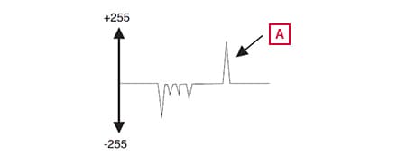 施加補(bǔ)正,使微分值和絕對(duì)值的最大值成為100%,穩(wěn)定邊緣。將微分波形中超出設(shè)定邊緣敏感度的峰值點(diǎn),作為邊緣點(diǎn)。