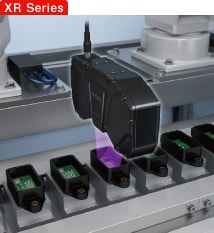 基恩士推出了2個種類的測量設備,作為3D檢測的解決方案。3D相機XR系列對應于靜止工件或節距傳送生產線,而超高速輪廓測量儀LJ-V7000系列則支持移動工件、連續傳送工序。這使得客戶能夠根據用途及工件狀態,選擇富有各自特征的測量原理及功能,實現合適3D檢測。