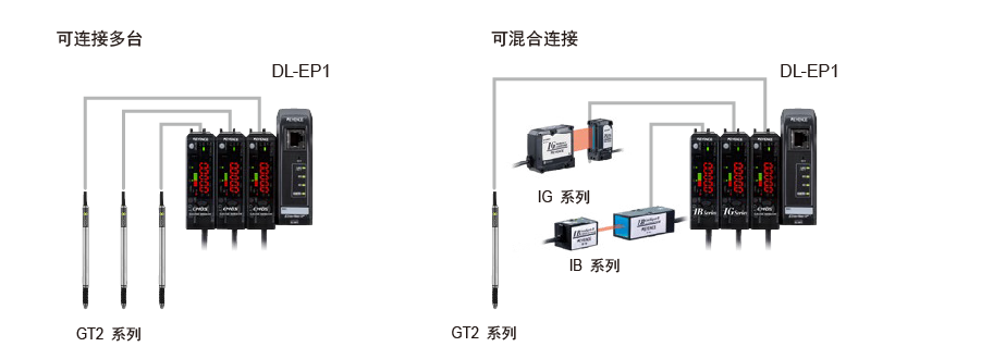 DL-EP1 可連接多臺傳感器或進行混合連接。