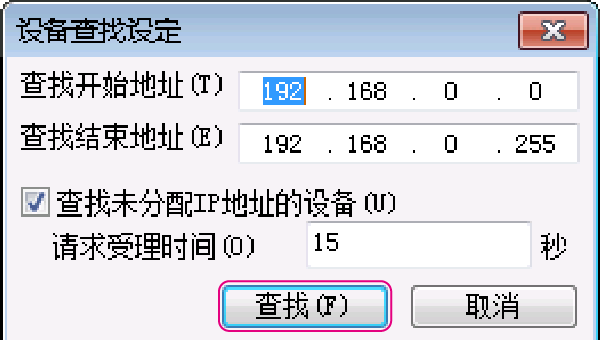 在 [IP 地址設(shè)定 ] 對話框中點擊,可搜索未使用的 IP 地址。