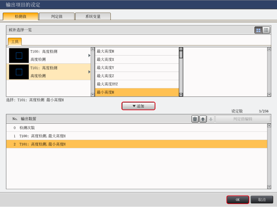 輸入以下數(shù)值。(把工具編號(hào) 100 的高度測(cè)量的最大高度H 的上限值設(shè)定為 1.234mm)