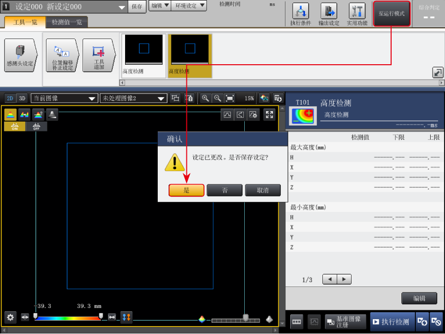 6.實(shí)機(jī)和單元編輯器的配置不同時(shí),會(huì)顯示確認(rèn)項(xiàng)目傳輸?shù)膶?duì)話框,在用USB電纜連接了PC和KV-X 系列的狀態(tài)下單擊〔是(Y)〕。