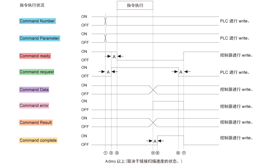 - 指令失敗時(shí) :Command complete(B000) 變?yōu)椤?”、Command error(B001) 也變?yōu)椤?”。另外,向 Command result(W004) 寫(xiě)入錯(cuò)誤代碼。