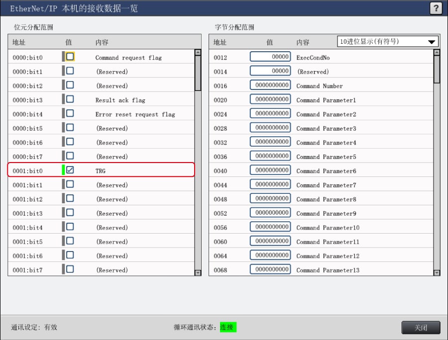 主機(jī)(LJ-S8000系統(tǒng)) 的接收數(shù)據(jù)、發(fā)送數(shù)據(jù)可通過(guò)“一覽顯示”進(jìn)行確認(rèn)的內(nèi)容是一樣的,以下為循環(huán)通信數(shù)據(jù)的分配狀態(tài)。