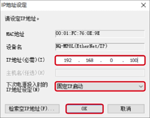 本資料以向 NQ 系列和 PC 分配以下 IP 地址時為例進行說明。在實施以下步驟前,請用 Ethernet 電纜連接 PC 和 NQ 系列。